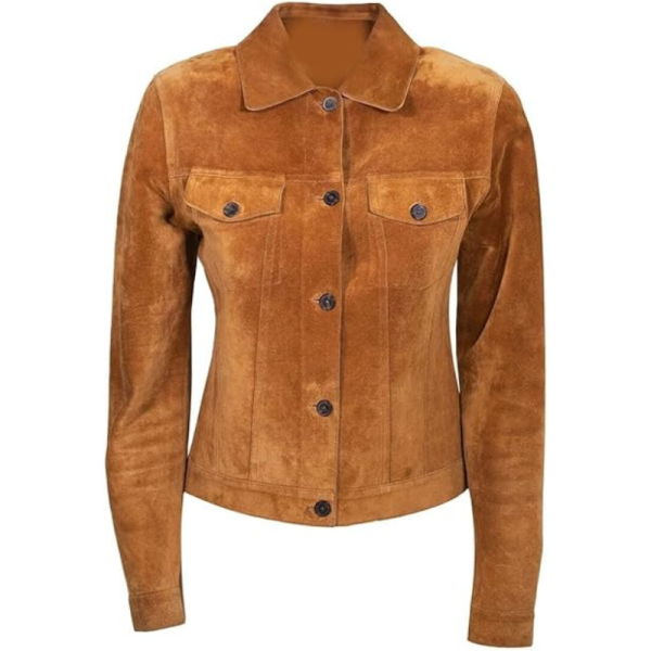 Women Suede Leather Trucker Jacket